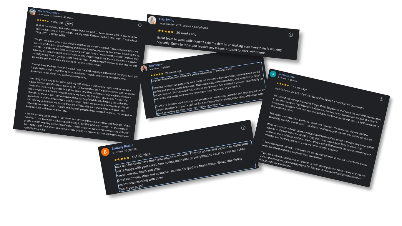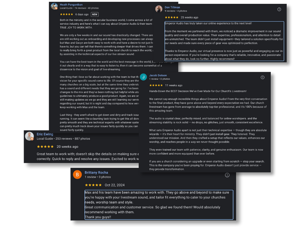 Professional livestream mixing that enhances the clarity and power of your worship team and sermon – without the hassle of finding an established local engineer.